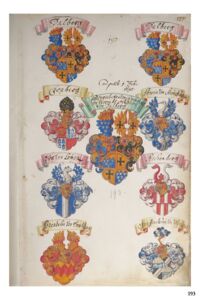 Die Seite in den originalen Wappenbüchern. Die Seitenzahl ist auch auf den Bildern selbst zu finden.