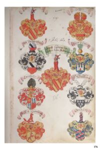 Für jedes Wappen wurde ein Datensatz angelegt, der auf der Unterseite „Wappenbuch“, welche auf unserer Seite „Sammlungen“ steht, und auch über den Link oben zu finden ist. Für jeden Datensatz wird dabei die Seite des Wappenbuchs gezeigt, auf der sich das entsprechende Wappen befindet. Deshalb taucht das gleiche Bild immer mehrfach für alle Wappen derselben Seite auf.