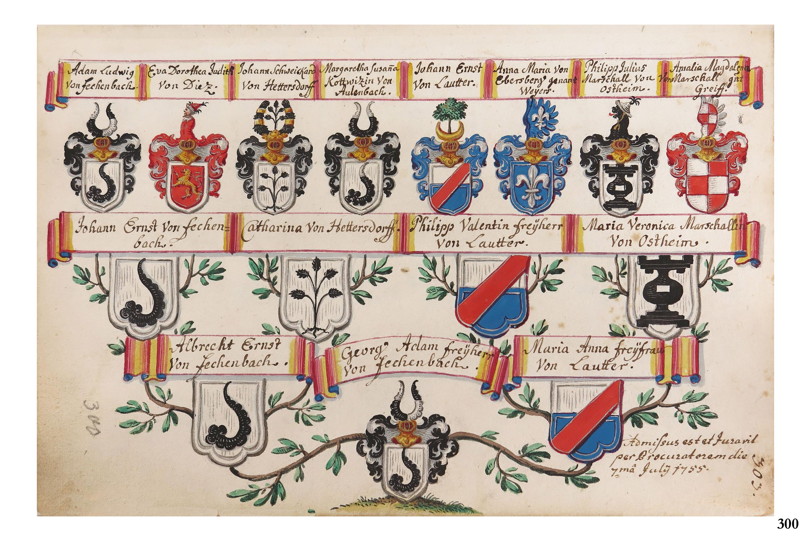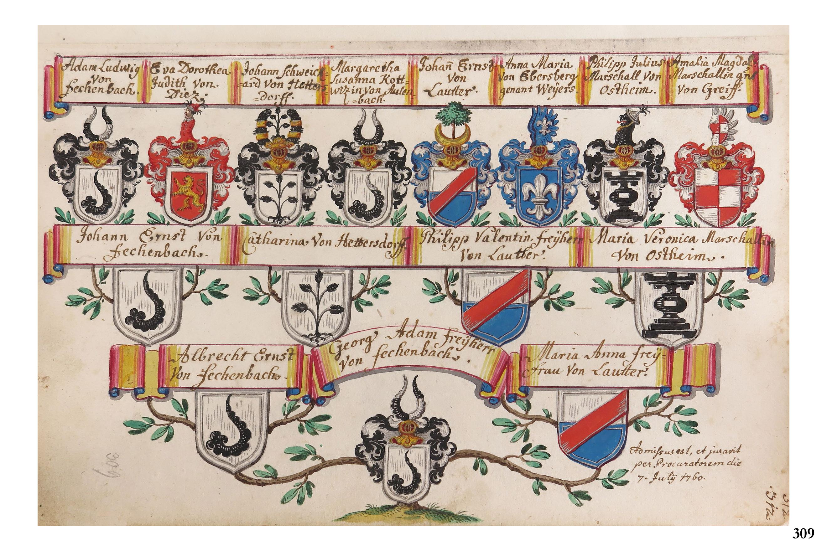 Hier wird zwischen den Wappen der Adeligen, die aufgeschworen wurden, und den Wappen, die zum Nachweis des Stammbaumes gehörten, unterschieden.